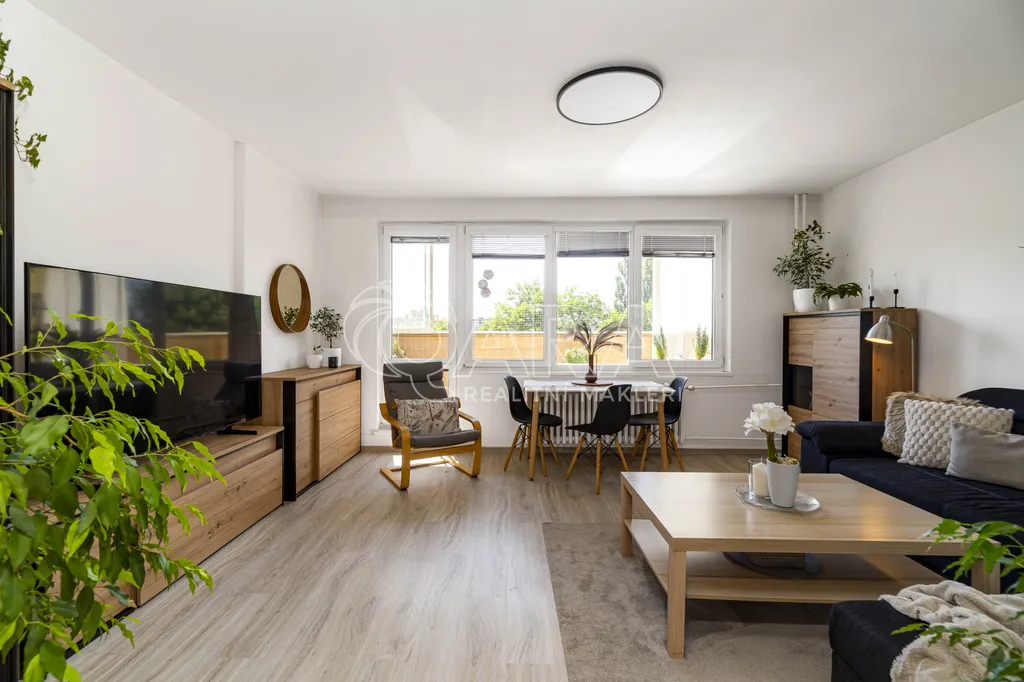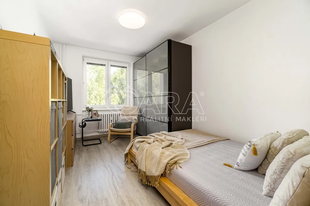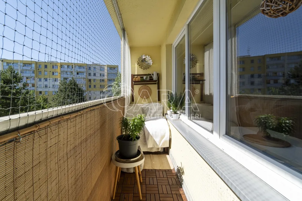 Byt má praktické dispoziční řešení: tři neprůchozí pokoje, světlý obývací prostor s posuvnými dveřmi, kuchyni, koupelnu a WC odděleně a také kumbál, který skvěle poslouží jako další úložný prostor. Zasklená lodžie je ideální pro relax nebo dětský koutek. Byt se prodává včetně zařízení (nebo po domluvě), stačí se jen nastěhovat. Dále bych vyzdvihl bezproblémové parkování před domem, které se už moc často nevidí.