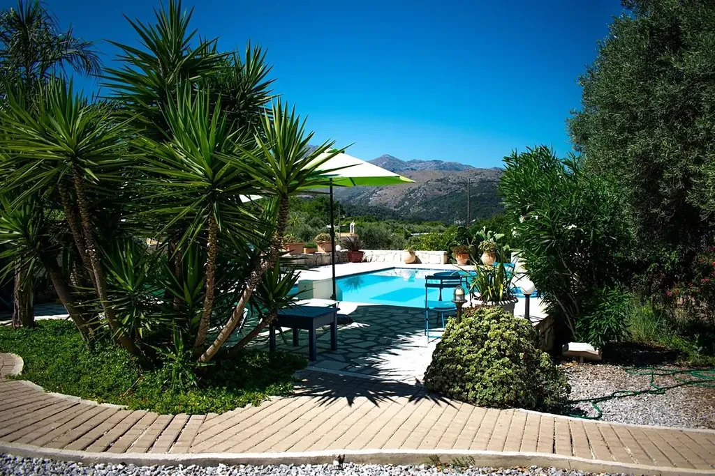 Nemovitost je vybavena klimatizační jednotkou pro chlazení i ohřívání v každém pokoji, vybavenou kuchyní, moskytiérami, krbem, solárním panelem pro ohřev vody. Parkovat čtyři automobily lze na vyhrazeném venkovním místě. Relaxovat můžete u bazénu s dlážděnou terasou ke slunění, nebo se procházet v zahradě, plné středomořské flóry. Rostou v ní pomerančovníky, citroníky, granátová jablka, fíkovníky, bugenvilea a jiné popínavé rostliny, a především 42 olivovníků. Vzdálenost k moři a pláži je přibližně 10,4 km, což je asi 17 minut jízdy autem. Do centra Rethymna se autem dostanete asi za 20 minut, na lokality jako Plakias nebo Preveli zhruba 30 minut.