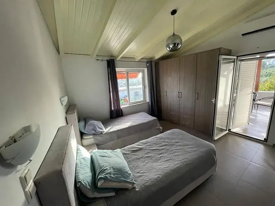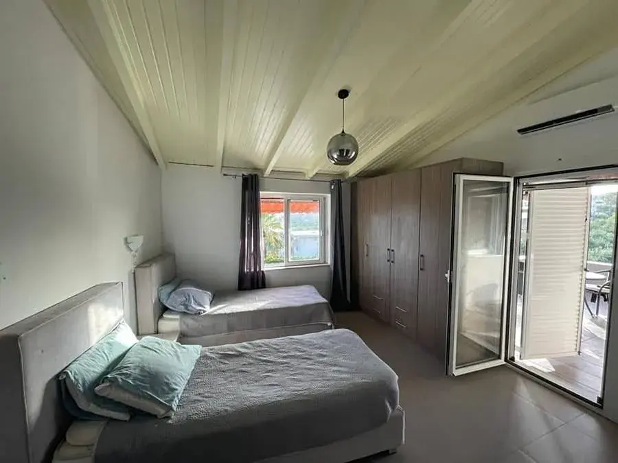 V přízemí se nachází obývací pokoj s jídelnou a kuchyňským koutem, koupelna a hlavní ensuit ložnice. V prvním patře naleznete dvě ložnice a velkou koupelnu. Z obou ložnic projdete přes francouzské dveře na krytou terasu s výhledem na moře. V prvním patře je ještě čtvrtá ensuit ložnice se samostatným vstupem, kterou lze využívat pro hosty.
