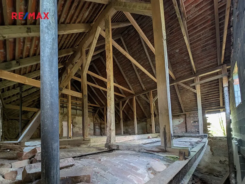 Přízemí domu o ploše přibližně 155 m² bylo původně rozděleno na obytnou část a část využívanou pro chov, patro pak nabízí kolem 145 m². K domu patří jeden menší sklep (13.5 m²) a na okraji pozemku další tři kamenné sklepy o celkové ploše přibližně 40 m², ideální například jako vinný sklípek či sklad. Na pozemku je rovněž elektrorozvodová skříň. Dům je určen ke kompletní rekonstrukci, přičemž zachovává cenné historické prvky, jako například původní trámy staré přes 200 let. Střecha domu je v dobrém stavu, místy vyžaduje drobné opravy. Statika je zachována, což poskytuje dobrý základ pro novou podobu domu.