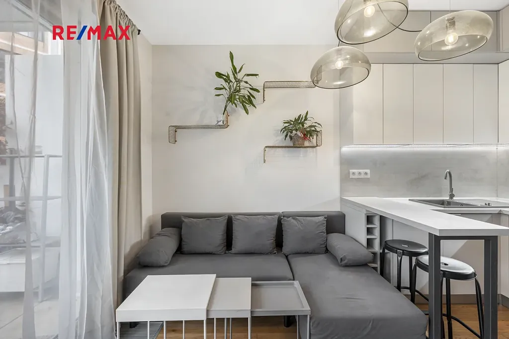 Byt je plně vybavený a připravený k okamžitému nastěhování. Součástí je kuchyňská linka se spotřebiči, vestavěné skříně na míru a dostatek úložného prostoru. Komfort bydlení doplňují masivní dřevěné podlahy, bezpečnostní vstupní dveře, elektricky ovládané předokenní žaluzie a rozkládací sedací souprava vhodná pro příležitostné přespání hostů. Díky velkým oknům je byt velmi světlý a nabízí dostatek denního světla po celý den. Z obytné části je přímý vstup na zahradu, která poskytuje ideální prostor pro relaxaci, posezení nebo opalování.