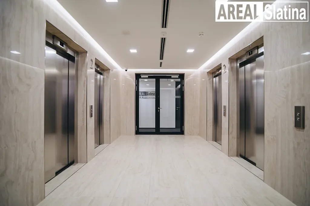 V budově je společná recepce 24/7, 5x výtah, kuchyňky, sprchy; v jednotce je zdvojená podlaha, podlahové krabice, otvíratelná okna, klimatizace.