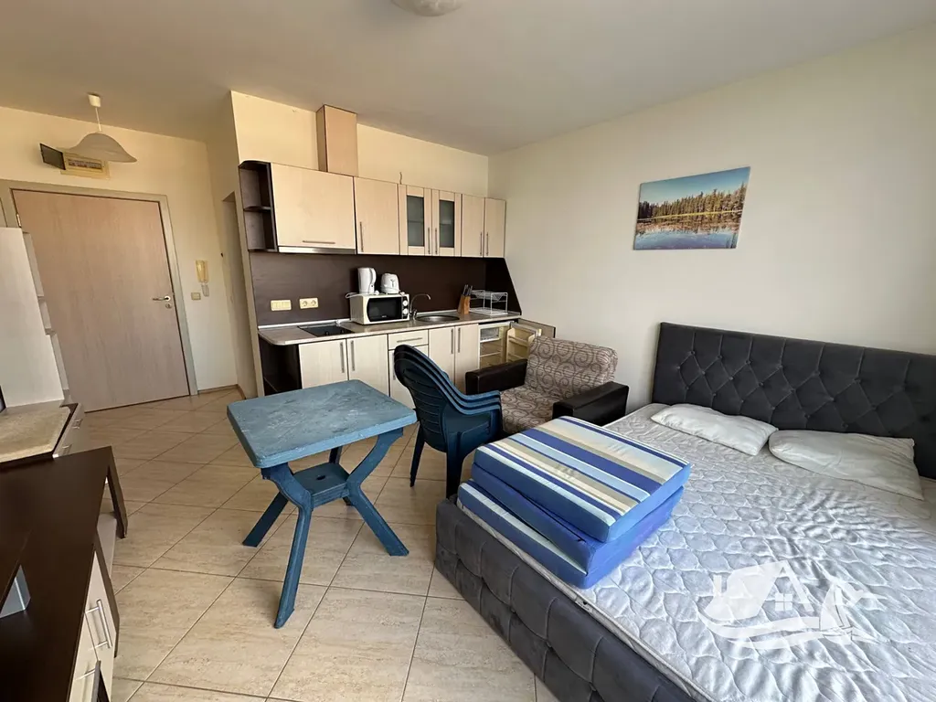 Jsou místa, kde se den zpomalí hned po probuzení a kde moře není plán, ale přirozená součást každodenního rytmu. Právě takový pocit nabízí tento světlý apartmán 1+kk v posledním sedmém patře elegantního komplexu Midia Family Resort v klidném přímořském letovisku Aheloy. Pouhých 100 metrů od nejdelší pláže mezi Varnou a Burgasem vzniká prostor, který propojuje moderní komfort s opravdovou atmosférou života u moře.