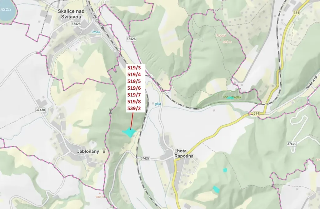 Lesní pozemky, trvalý travní porost, zahrada o výměře 11 294 m2, parcelní čísla 519/3, 519/4, 519/5, 519/6, 519/7, 519/7, 519/8, 539/2, podíl 1/1, katastrální území Lhota Rapotina, obec Lhota Rapotina, obec s rozšířenou působností Boskovice, okres Blansko, Jihomoravský kraj.