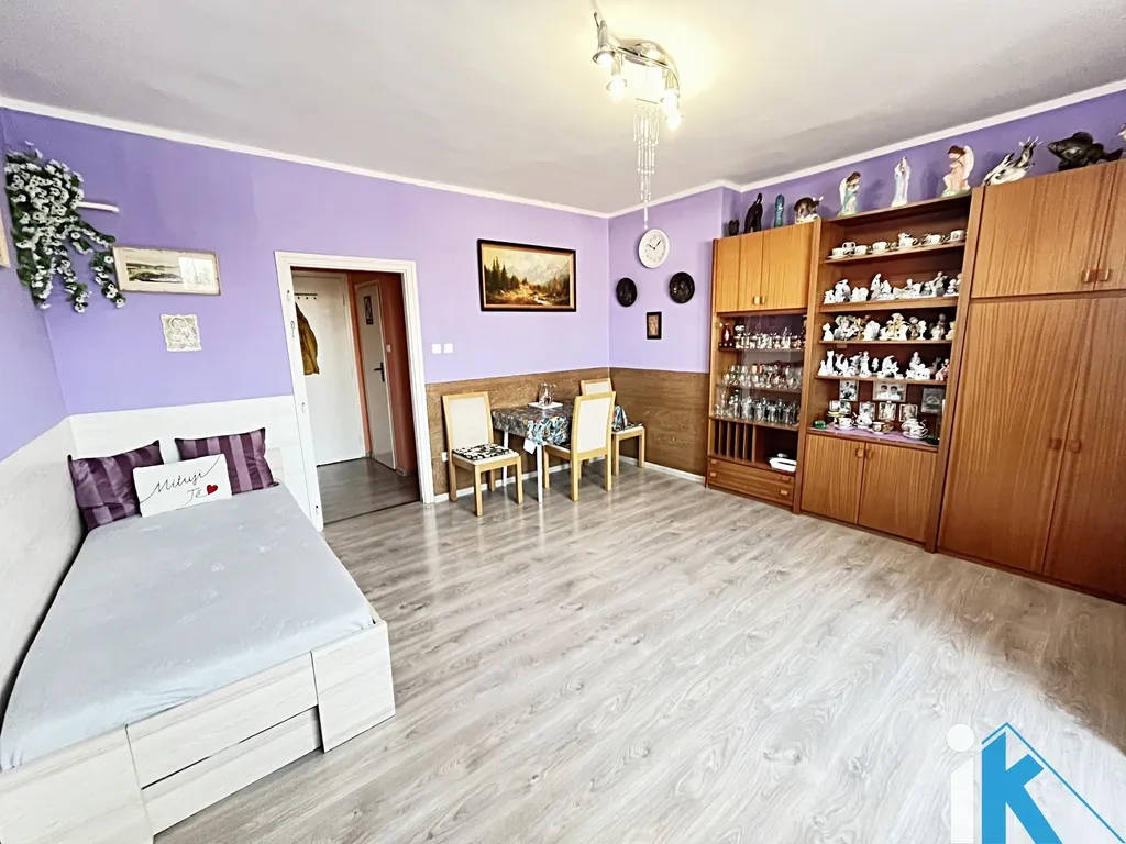 Byt má vstupní chodbu, WC, obytný pokoj cca 19m2, samostatnou menší kuchyň a sprchový kout.