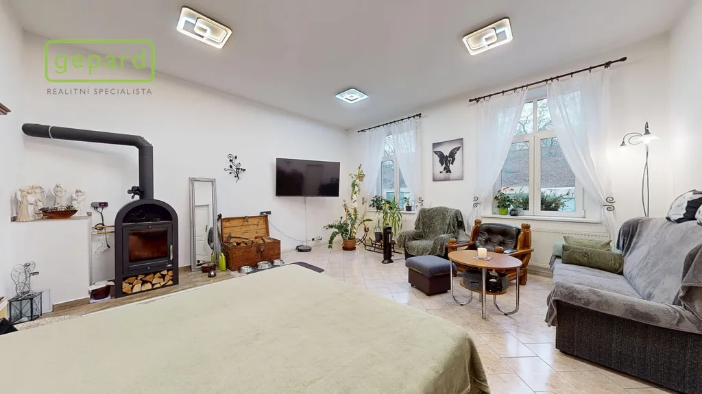 Obývací místnost s velkorysým prostorem jako středobod tohoto krásného bytu vybízí ke svolání celé rodiny na společně strávený čas a disponuje dostatkem prostoru pro vybavení dle vašich představ a přání. Můžete si vybrat, zdali budete vytápět plynem a užívat si beztarostný život s topením či využítat kotel na dřevo s výměníkem a užít si praskající potěšení (uskladnění dřeva na zahradě přímo u domu). V kuchyni přijde vhod podlahové topení. Byt dále nabízí další samostatný pokoj, který je vhodný jako ložnice, dětský pokoj, pracovna či pokoj pro hosty. Velkorysá předsíň vybízí k odkládání všeho potřebného se zabudovanou skříní a komorou.
