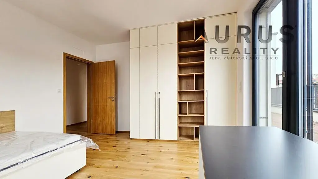 Byt je dispozičně řešen jako 4+kk, nachází se ve 4. podlaží, čistá obytná plocha 123,5 m2 + dvě regulérní ničím nestíněné terasy 12m2 a 14,4 m2. K dispozici jsou, kromě velkého obývacího pokoje s kuchyňským koutem a vstupem na jižní terasu, tři samostatné ložnice, z toho dvě s přístupem na terasu severovýchodní, dvě prostorné koupelny, jedna se sprchovým koutem a toaletou a druhá s vanou, dvěma umyvadly a toaletou. Dále je v bytě samostatná místnost pro praní, sušení a uložení prádla a samostatná toaleta, také je k dispozici velké garážové stání a velký sklep 5,6 m2. Je možné si pronajmout ještě druhé velké parkovací stání vedle. Byt je částečně zařízený novým vybavením, které je vidět na fotografiích.