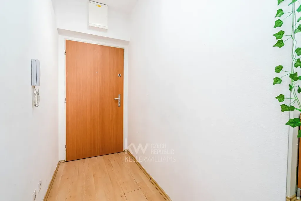 Po vstupu do bytu oceníte vestavěné skříně, které v 2+kk dělají obrovský rozdíl – byt je díky nim přehledný a „bez věcí po bytě“. Srdcem bytu je obývací pokoj s kuchyňským koutem a vstupem na balkon. Kuchyňská linka je po rekonstrukci a je řešená moderně a čistě, takže byt působí svěže hned při vstupu do místnosti.