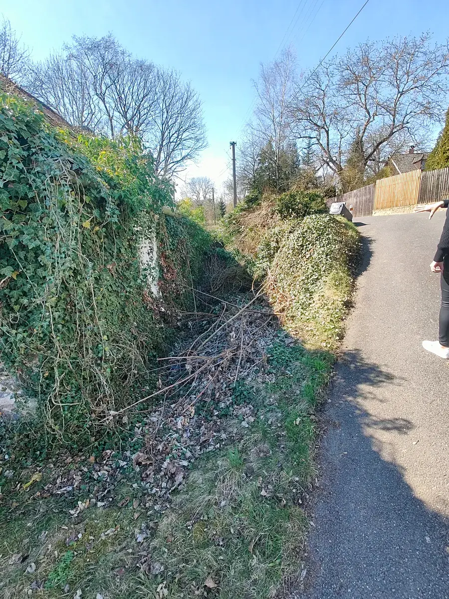 Pozemek o rozloze 457 m2 je svažitý, ale velice zajímavý, protože se svahuje do malého potůčku.