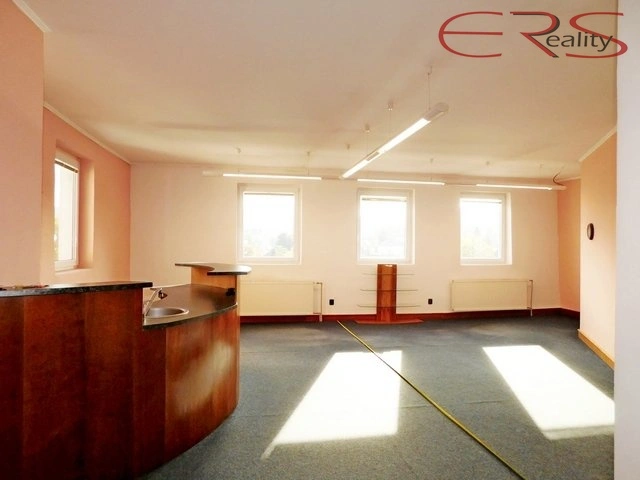Pronájem kancelářských prostor. Možnost provozování služeb na bázi úpravy nehtů a podobných, k dispozici je vestavěný nábytek s dřezem. Jedná se o jeden prostor s bohatým prosklením a jižní orientací. Částečně přepaženo a vybaveno vestavným nábytkem. Určeno k dlouhodobému pronájmu. Společné sociální zařízení na chodbě.