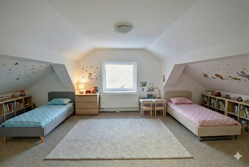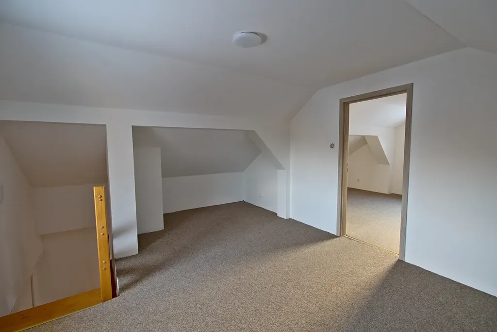 Nabízíme k prodeji rodinný dům v klidné části obce Meclov. Dům prošel v roce 2017 celkovou rekonstrukcí do současné podoby. Dům je částečně podsklepený cca 9m2, nachází se zde přívod vody s vodoměrem, el.bojler a el.kotel. V přízemí se nachází prostorné zádveří, koupelna s WC, dále je zde chodba se schodištěm, ze které se vejde do ložnice a do kuchyně s obývacím pokojem. V patře naleznete dva pokoje. Na dvou fotkách byla použita vizualizace AI pro lepší představu o využití pokoje.
