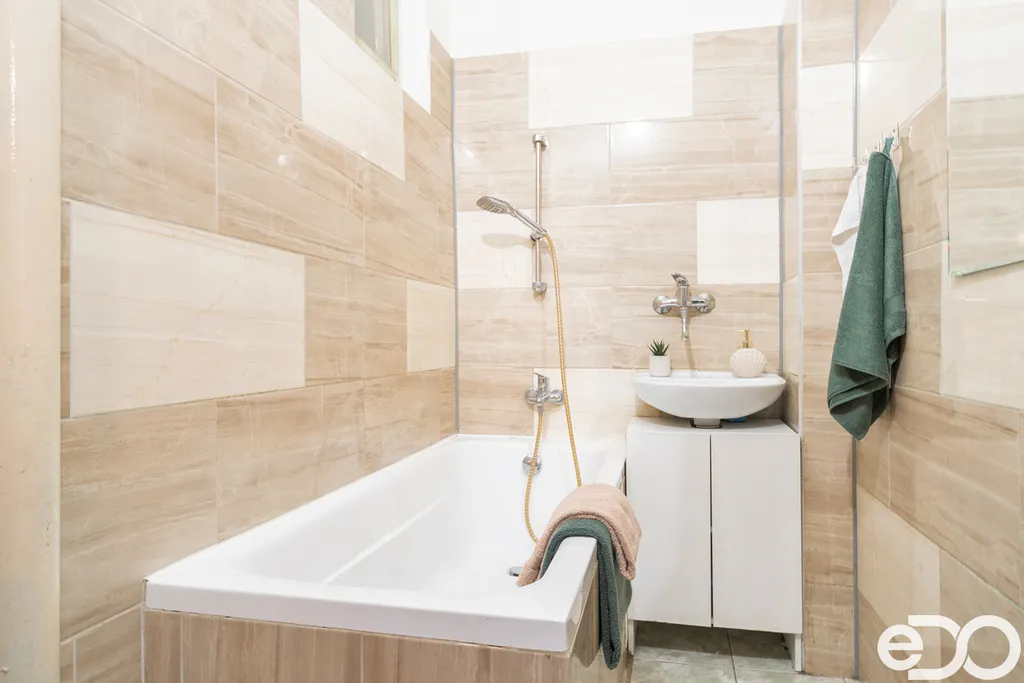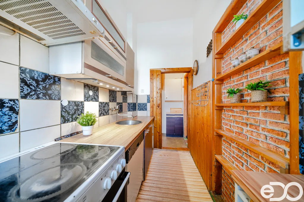 Byt má terasu s výhledem do zahrady, samostatné WC a koupelna jsou po rekonstrukci.