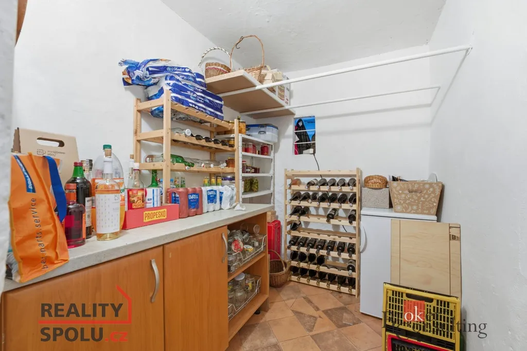Přízemí: jedna samostatná místnost + praktické odkládací / technické místnosti, ideální jako zázemí domu, kancelář, sklad nebo společné prostory