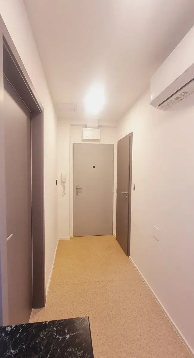 Klimatizační jednotka je umístěna v chodbě.