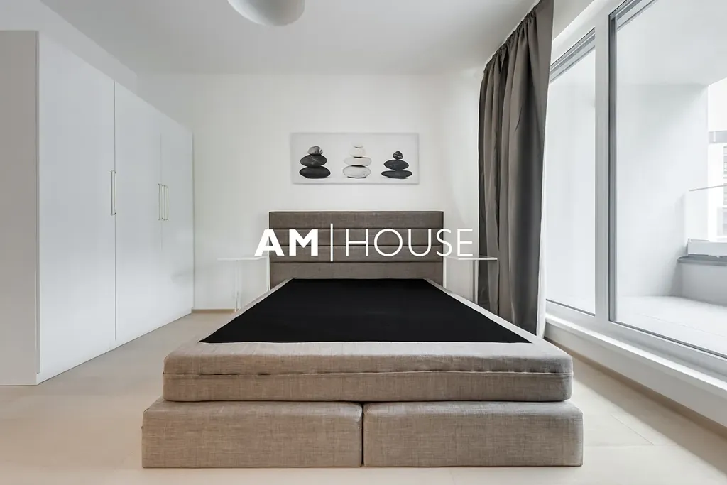 Dispozice jednotky se skládá z obývacího pokoje s vybavenou kuchyňskou linkou. V privátní části bytu je ložnice. Byt má koupelnu s vanou, umyvadlem, WC. K dispozice je komora s šatnou a pračkou.