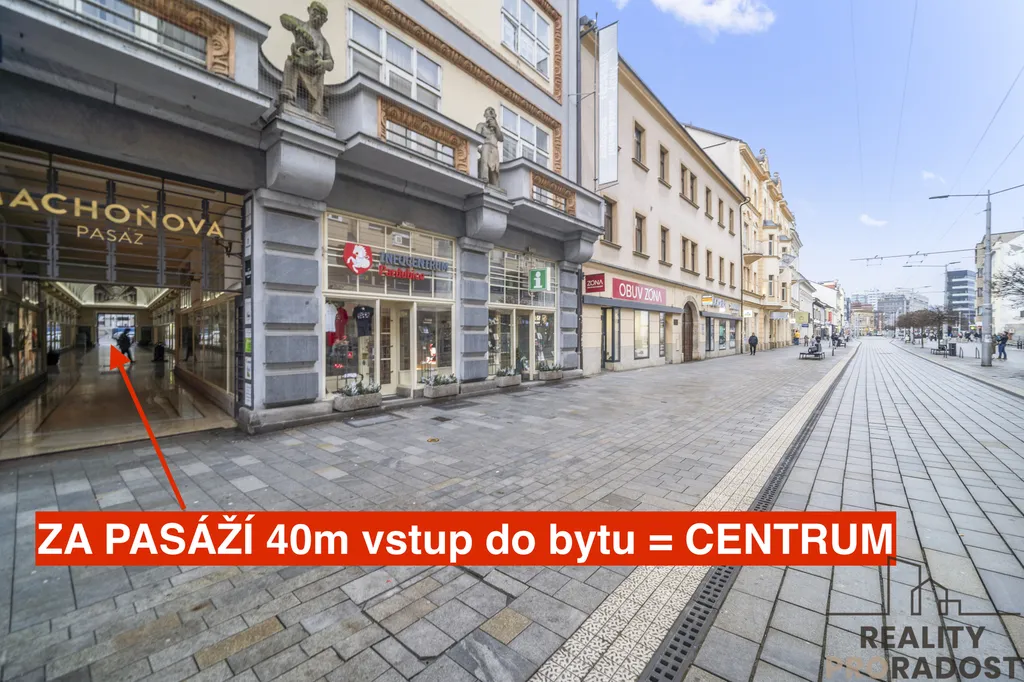 Byt se nachází v klidné části města, přesto v samotném centru Pardubic – průchodem přes Machoňovu pasáž se dostanete přibližně do 100 metrů na třídu Míru.