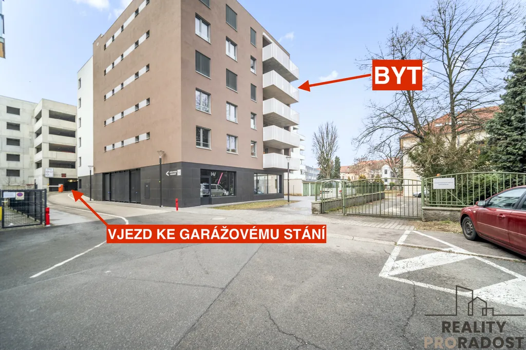 Velkou výhodou je komfortní přístup suchou nohou – autem vjedete přímo do garážového stání v patře bytu, odkud projdete krátkou chodbou. Poslední dveře na chodbě patří již pouze tomuto bytu a hned vedle nich se nachází prostorný sklep.