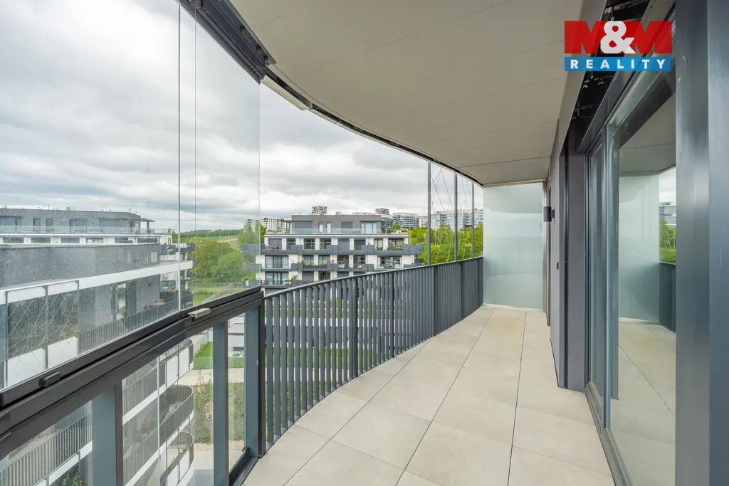 Nabízíme ke koupi prostorný a světlý byt 4+kk o celkové výměře 99,7 m², situovaný ve 6. patře novostavby v oblíbené rezidenční čtvrti Praha 5 – Stodůlky. Byt je dokončen a připraven k okamžitému nastěhování – bez kompromisů, bez čekání. Dominantou této nemovitosti je výjimečný balkón o rozloze 51 m², přístupný ze všech obytných místností. Poskytuje klidný výhled do okolí, dostatek soukromí a prostor pro odpočinek, rodinná posezení i městskou zahrádku.Byt disponuje otevřeným obývacím prostorem s kuchyňským koutem, třemi neprůchozími ložnicemi, koupelnou s vanou a toaletou, samostatnou toaletou a praktickou komorou/technickou místností a šatnou. Interiér je prosvětlen velkoformátovými okny, na podlahách jsou kvalitní dřevěné podlahy a koupelny jsou vybaveny designovými obklady. Součástí standardu je příprava na chytrou domácnost i venkovní elektrické žaluzie. K bytu náleží prostorná sklepní kóje 5m2 a 2 parkovací stání.