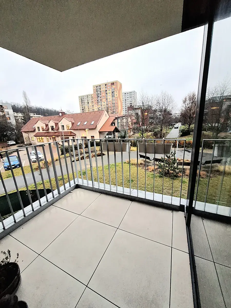 Pronájem luxusního bytu 3kk/T (93,3 m2), garážové stání, novostavba Rezidence Michelský Park, Michelská ulice, Praha 4.
