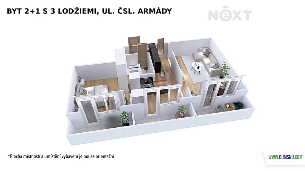 Velkou předností jsou tři prostorné lodžie, které výrazně rozšiřují užitnou hodnotu bytu. Nabízejí prostor pro posezení, relaxaci, ale i praktické využití, například pro sušení prádla nebo pěstování bylinek.