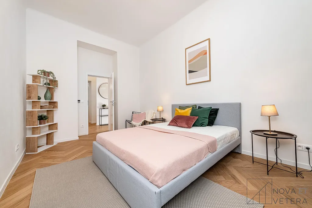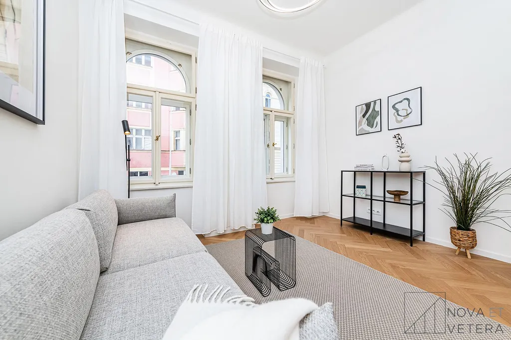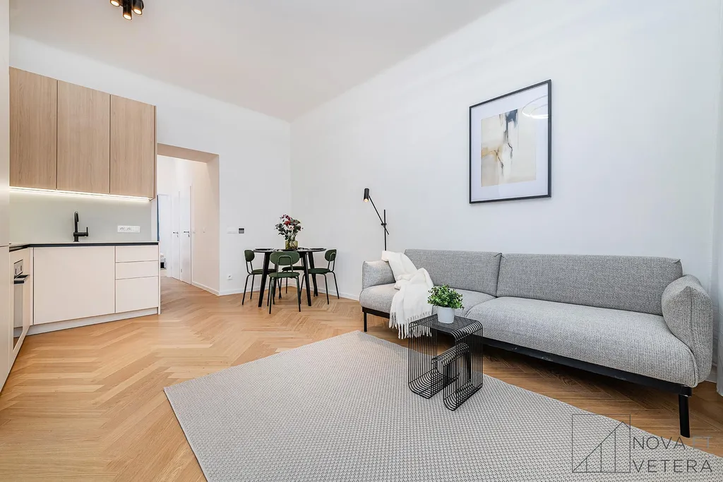 Byt právě prošel kompletní rekonstrukcí, která zahrnovala nové rozvody elektřiny, vody a odpadů, moderní podlahové krytiny, okna, nové obklady a sanitu.Součástí vybavení je kuchyňská linka na míru se spotřebiči prémiové značky Bosch.