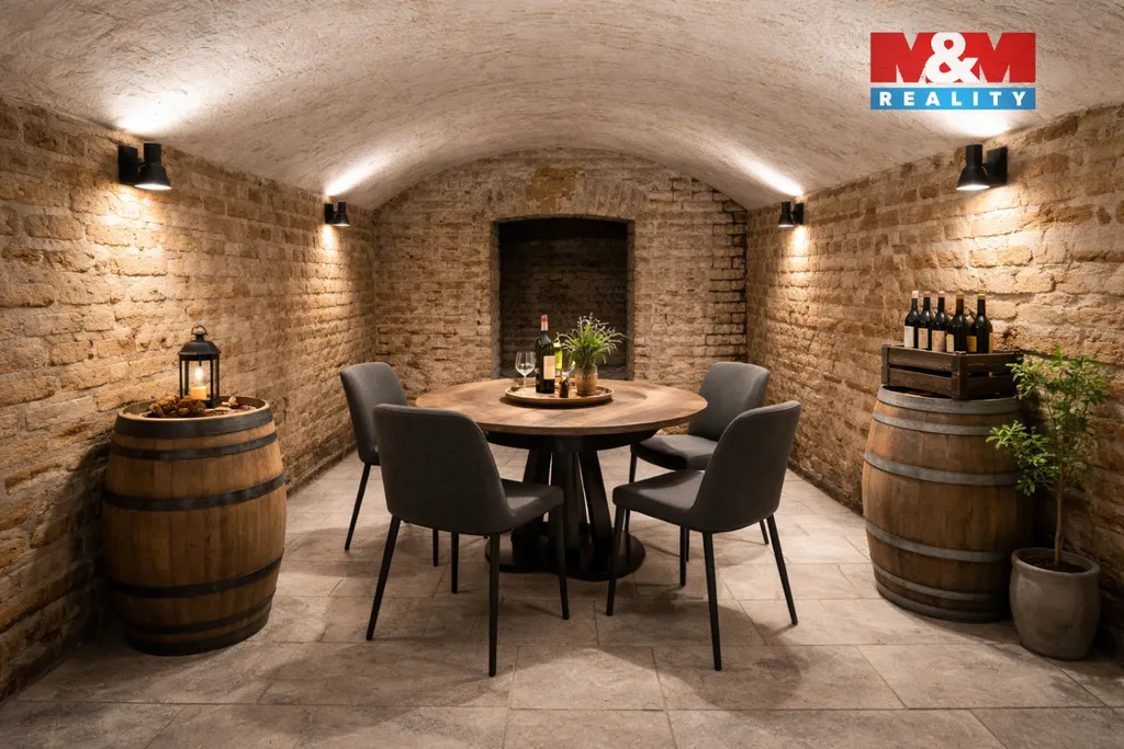 Součástí nemovitosti je prostorné podkroví, vinný sklep, technická místnost, kolárna a dvorek.
