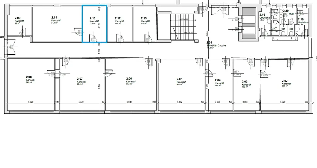 V rámci podlaží je k dispozici sdílené sociální zázemí, v současnosti dokončujeme výstavbu společné kuchyňky která bude k využití pro všechny nájemce kanceláří.