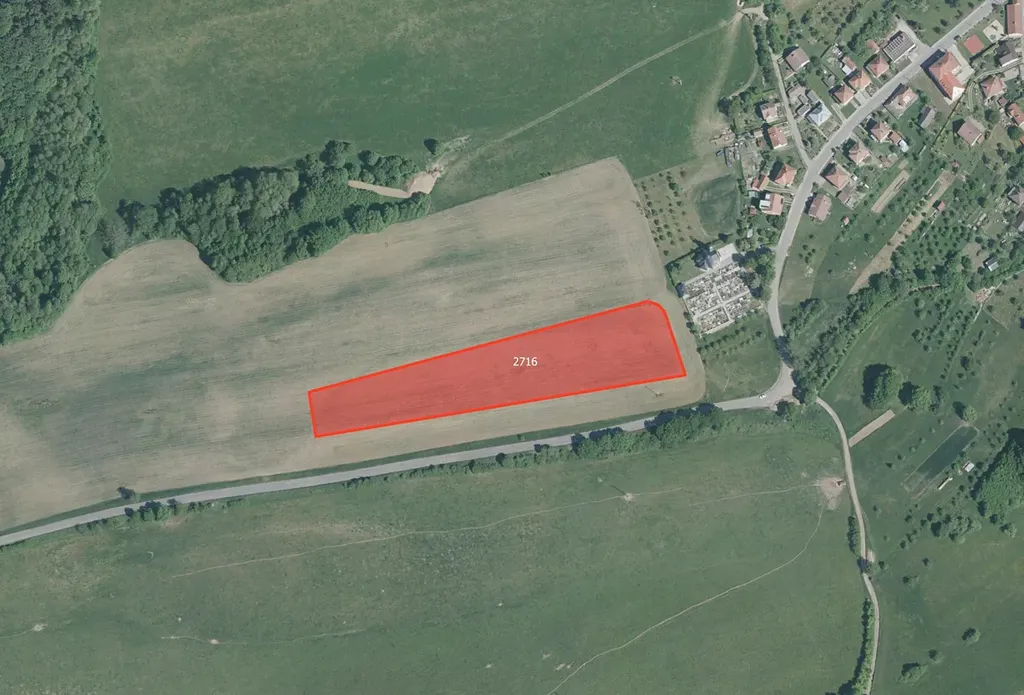 Jedná se o parcelu č. 2716. Pozemek má výměru 12 368 m² a je evidován jako orná půda.