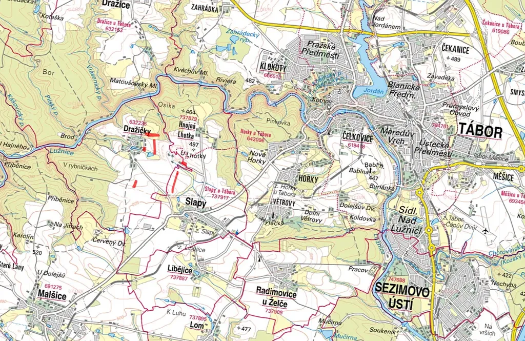 Na listu vlastnictví č. 102 v katastrálním území Slapy u Tábora (obec Slapy) jsou k prodeji parcely: