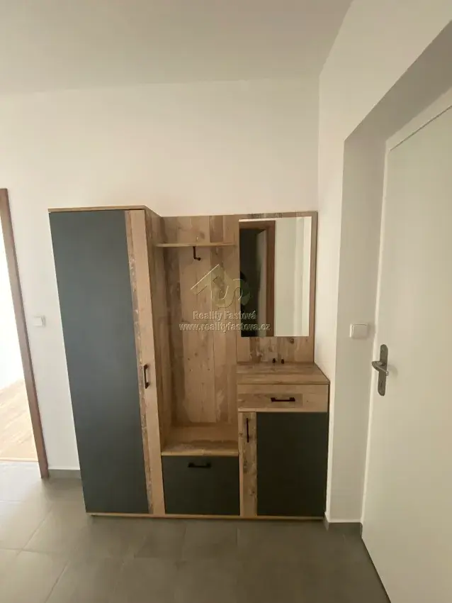 Skládá se z obývacího pokoje s kuchyňksým koutem, kde je k dispozici kuch.linka zhotovená na míru vč. dřezu, indukční desky na vaření, el.trouby a digestoře. Obývací pokoj je plně prosklen a s výstupem na lodžii. Dále samostatný pokoj s lodžií. Na každou lodžii je vyvedena elektřina – osvětlení a zásuvky, s krásným výhledem do okolí. Dále má byt koupelnu s vanou, umyvadlem a toaletou a komoru v bytě. Na chodbě domu naproti bytu je další komora (sklep) o vel.2,4 m2. Jinak je byt nabízen bez nábytku. Pro větší bezpečí je byt opatřen kamerovým domovním zvonkem a světlem na čidlo v předsíni bytu.