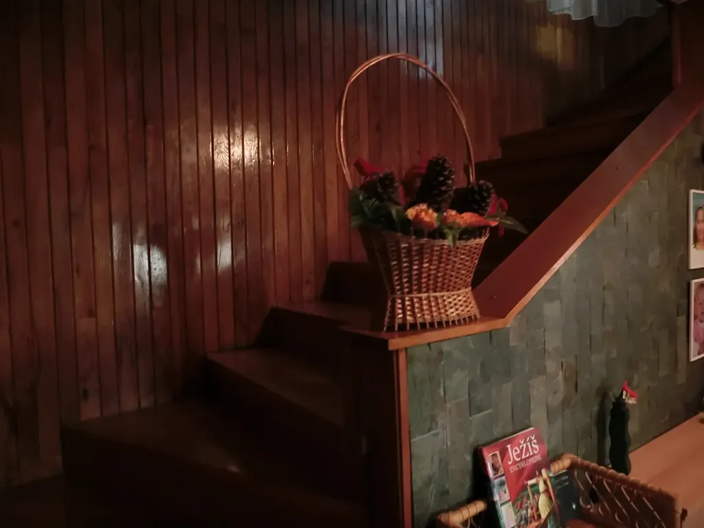 Dům je ve velmi dobrém stavu a je vybaven pěti pokoji, což z něj činí ideální volbu pro početnou rodinu. Dispozice domu: 1.NP-vstupní chodba se vstupem do prostorného obývacího pokoje s kuchyňským koutem, v pravé části vstup do koupelny s rohovou vanou a sprchovým koutem se vstupem na terasu. Ve 2.NP se nachází dva dětské pokoje, ložnice a dvě lodžie s krásným výhledem po okolí. V přízemí domu ve sklepních prostorech se nachází garáž , technická místnost, dva pokoje, sociální zařízení a krásný prostorný kvelbený sklep o ploše 52m2.
