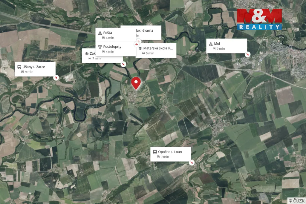 Dojezdová vzdálenost do Loun a Žatce cca 15 min zajišťuje pohodlný dojezd za všemi potřebnými službami, školami a kulturou. Veškerá občanská vybavenost se nachází také v obci Postoloprty vzdálené cca 3 km.