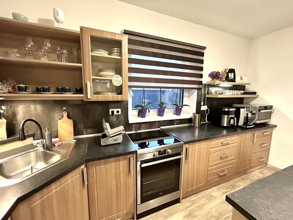 • dominantou domu je světlý obývací pokoj propojený s moderním kuchyňským koutem s dostatkem prostoru i úložných míst,