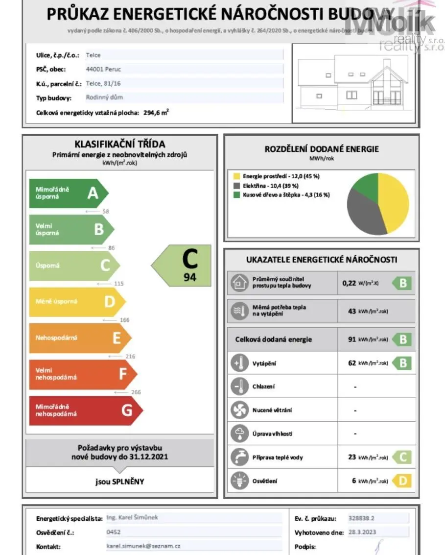| Třída energetické náročnosti | C - Úsporná |