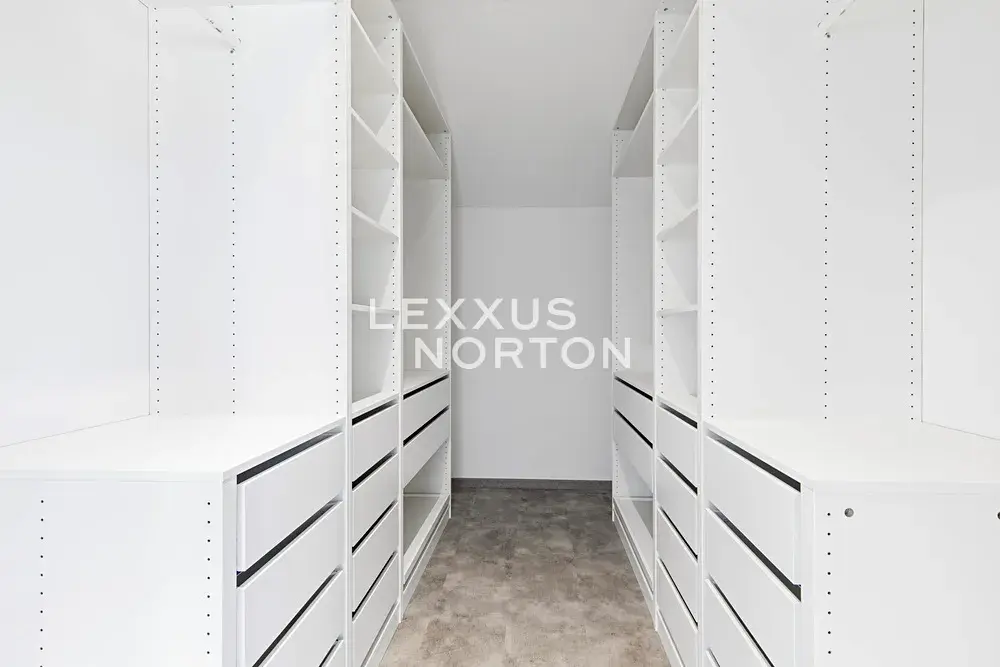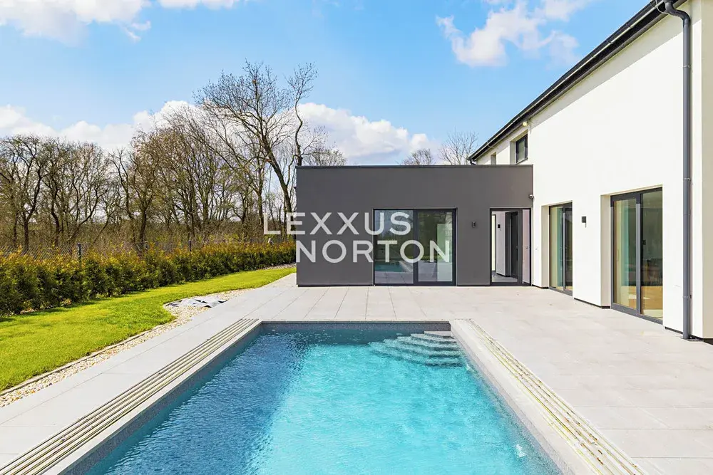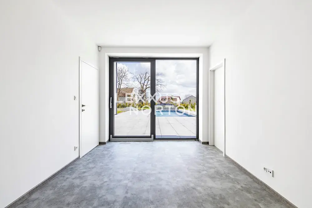 Vstupní chodba je vybavena vestavěnými skříněmi. Kuchyňský kout nabízí kompletní vybavení včetně indukční varné desky, trouby, americké lednice, myčky nádobí, mikrovlnné trouby a odsavače par. K ložnici v přízemí náleží vlastní koupelna se sprchovým koutem a šatna. Komora je vybavena regálovým systémem, který poskytuje dostatek úložného prostoru. V prvním patře se nachází hlavní ložnice se šatnou a vlastní koupelnou se sprchovým koutem. Další ložnice jsou vybaveny vestavěnými skříněmi. Koupelna na patře disponuje vanou a v samostatné prádelně je připravena instalace pro pračku a sušičku. Na zahradě se nachází vyhřívaný bazén se zastřešením. V celé nemovitosti je instalováno podlahové vytápění. Dům je dále vybaven vstupní bránou s dálkovým ovládáním, zabezpečovacím alarmem, kamerovým systémem, vysokorychlostním internetem s rozvody po celém domě a centrálním vysavačem značky Husky.