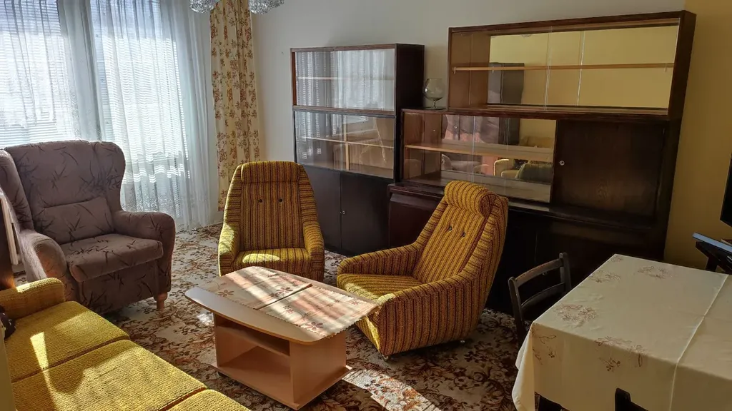 Byt je nyní kompletně vybaven starším nábytkem vč. pračky a ledničky a kuchyňskou linkou s kombinovaným sporákem (viz. foto). Vybavení lze dále používat nebo po dohodě část nebo všechen nábytek odvést.