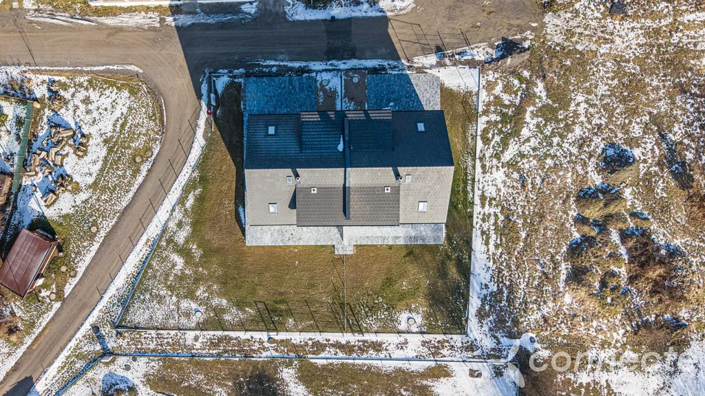 Celková užitná plocha domu činí přibližně 143 m, z čehož 72 m připadá na přízemí a 70,95 m na obytné podkroví. Dispozice 5+kk nabízí dostatek prostoru pro pohodlné rodinné bydlení. Zastavěná plocha domu je 98,3 m a velikost pozemku činí 418 m. Součástí pozemku jsou dvě venkovní parkovací stání. Oplocená a zatravněná zahrada je orientována na východ, jih a západ, což zajišťuje dostatek světla po celý den.