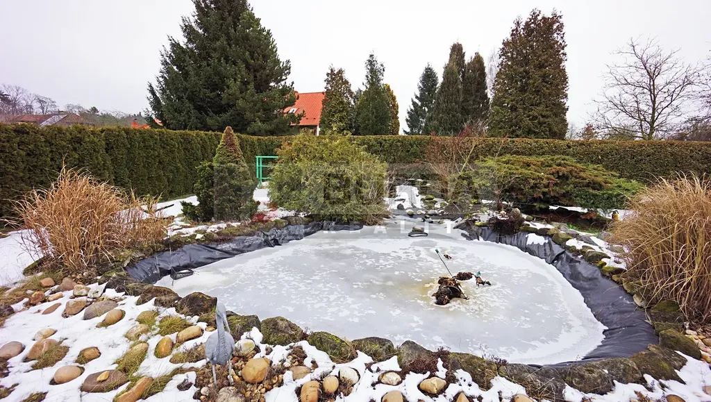 Na pozemku je jezírko, které bylo vytvořeno vložením fólie do vyhloubené jámy. Jezírko je lemováno okrasnými dřevinami a zakrslými kultivary. Na pozemku je dále bazén o průměru 4,6m.