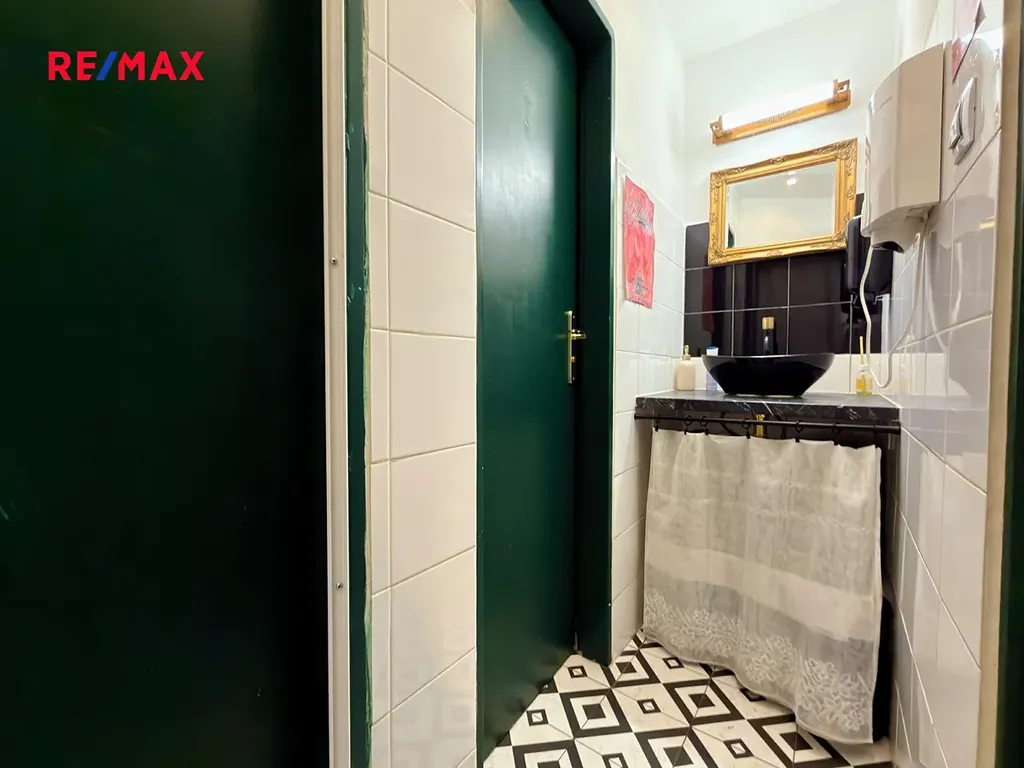 Součástí pronájmu je rovněž sklep o velikosti cca 4 m² a samostatné WC pro zaměstnance, obojí přístupné z vedlejšího vchodu. Vytápění je řešeno elektrickými přímotopy, ohřev vody zajišťuje elektrický kotel umístěný v technické místnosti.