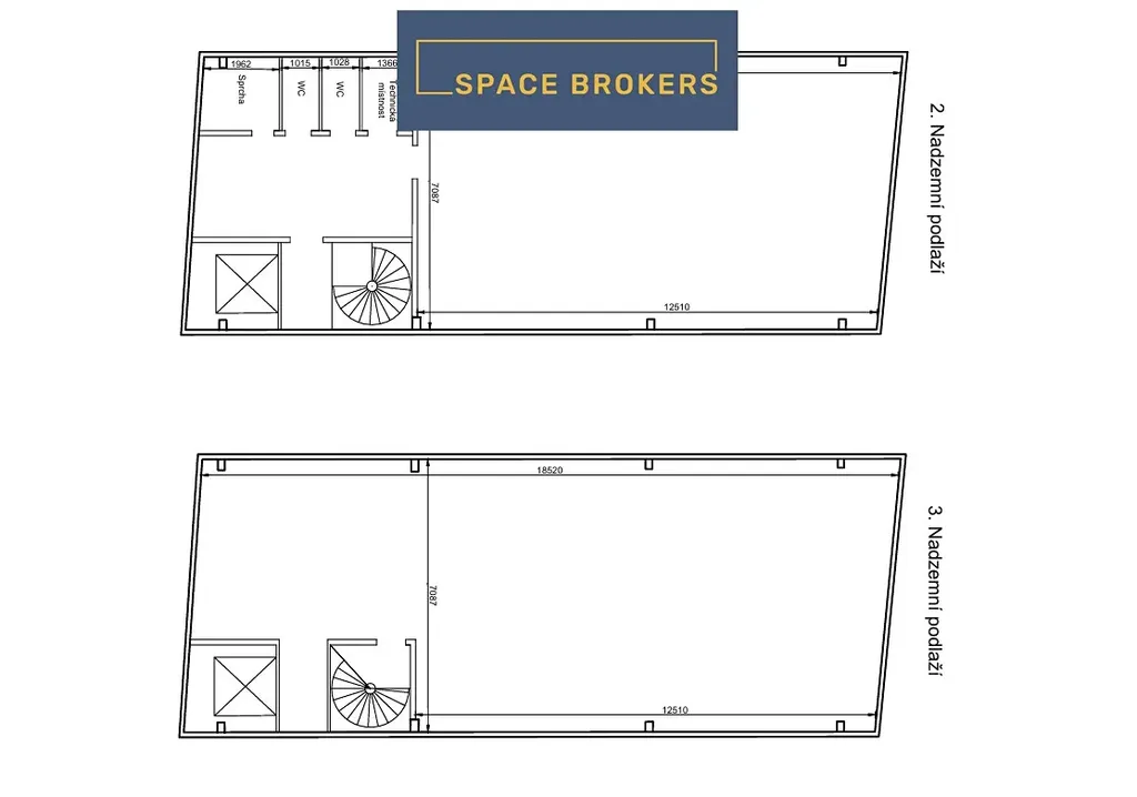 - druhé patro open-space o ploše cca 128 m2
