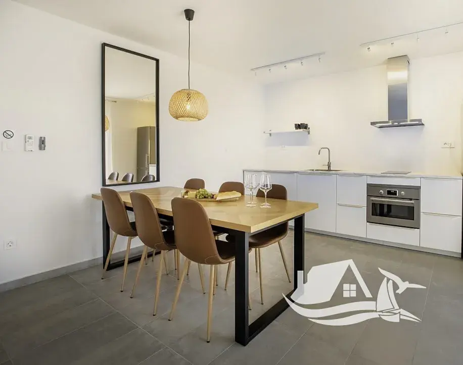 Apartmán se prodává kompletně zařízený a vybavený, připravený k okamžitému užívání bez nutnosti dalších investic. Nemovitost je již využívána ke krátkodobému turistickému pronájmu, což umožňuje plynulé pokračování v nájmu nebo přechod na vlastní rekreační či celoroční užívání. Součástí nabídky je jedno parkovací místo, s možností dokoupení dalšího. Obyvatelé domu mají k dispozici také společnou střešní terasu s širokým výhledem na moře a město.
