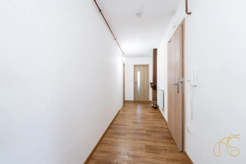 Nabízíme k prodeji velice hezký, zrekonstruovaný byt o velikosti 3+kk s celkovou výměrou 158 m². Jedná se o podkrovní byt v osobním vlastnictví nacházející se ve II. nadzemním podlaží domu. Vytápění i ohřev vody je řešeno vlastním plynovým kotlem. Od vstupních dveří vlevo se nachází pokoje a v pravé části chodby je koupelna se sprchovým koutem a samostatná toaleta. Ze společné místnosti pro kuchyň, jídelnu a obývací pokoj je i vstup do půdního prostoru o výměře 41 m² využívaného jako sklad.