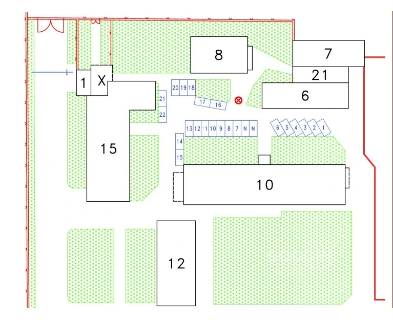 Ve společných prostorách je k dispozici Kuchyňka, WC pro muže i ženy a sprcha. Parkování je možné přímo v areálu za 700 Kč/měsíc, není však podmínkou nájmu.