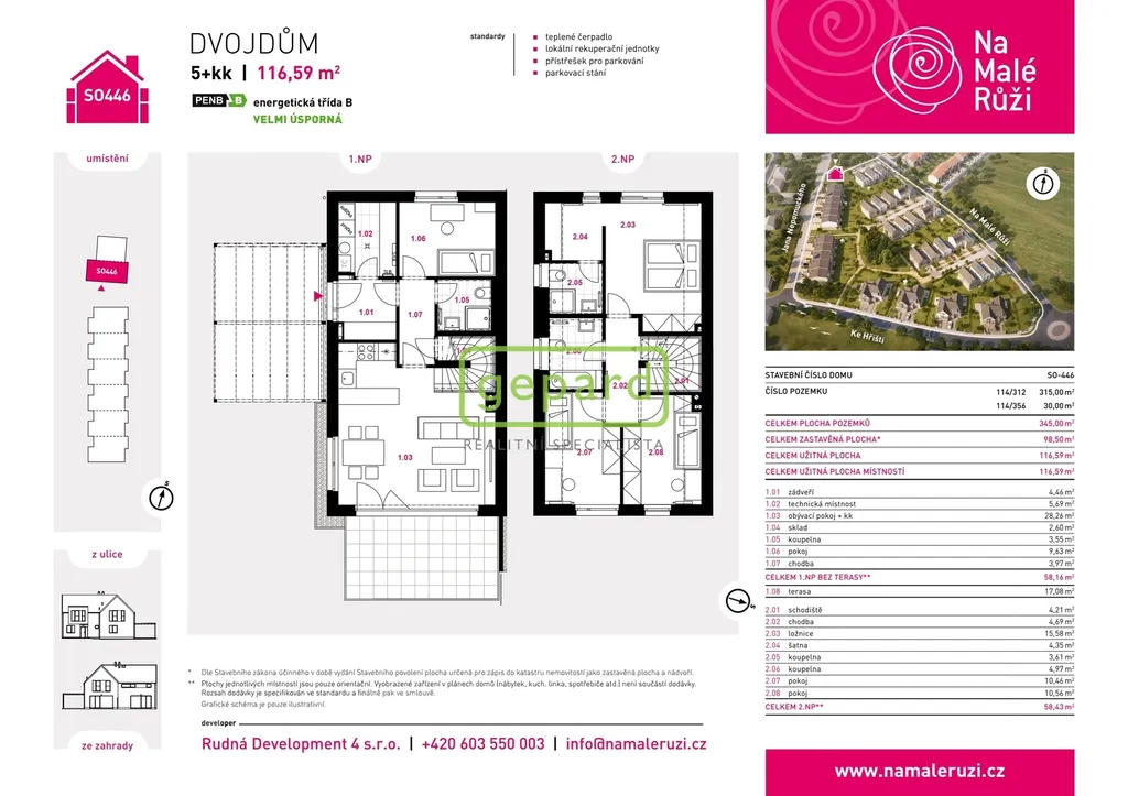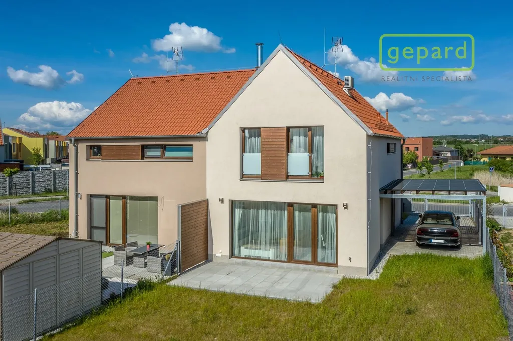 Realitní společnost Gepard nabízí prodej zděného rodinného domu o dispozici 5+kk s terasou a s krytým parkovacím stáním o užitné ploše 117 m2 a pozemkem o ploše 345 m2. Jedná se o součást dostavby 6. fáze projektu "Na Malé Růži" v rozvíjející se lokalitě Drahelčice, Rudná u Prahy. Projekt zahrnuje 40 + 2 domů energetické třídy A a B a je ohraničen ulicemi Na Malé Růži, Jana Nepomuckého a Ke Hřišti.