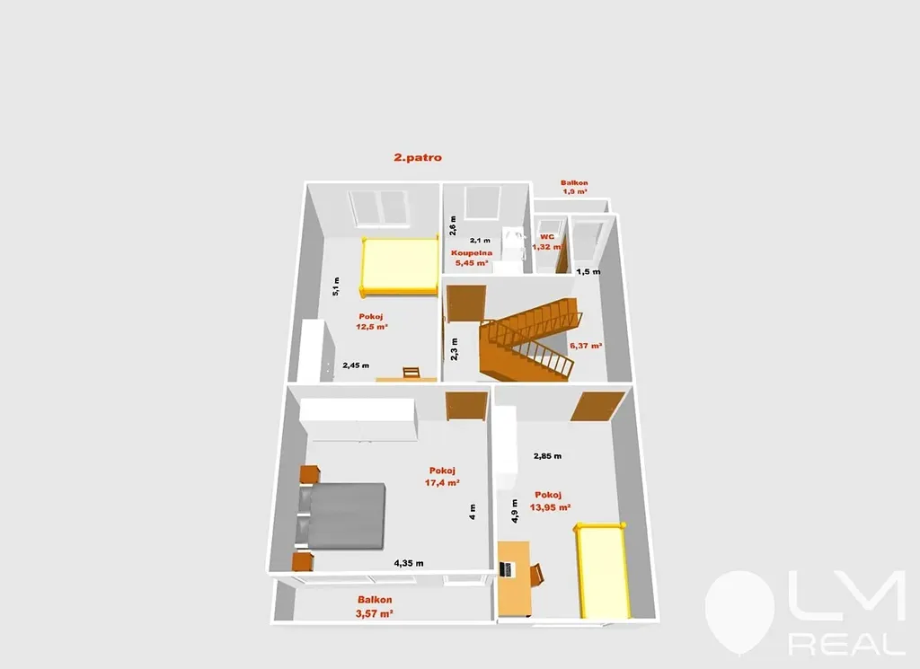 3.NP dvě ložnice, koupelna, samostatné WC