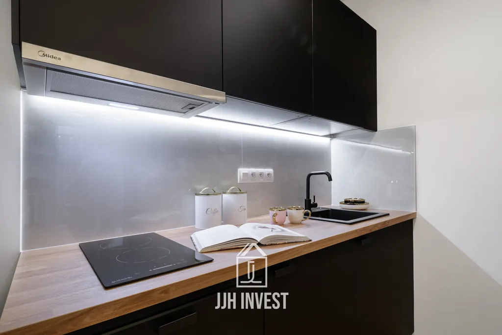 Nabízíme k dlouhodobému pronájmu exkluzivní byt 1+kk o velikosti 27,4 m² s prostornou terasou 6,6 m², situovaný v prestižním rezidenčním projektu Hagibor od developera Crestyl. Byt se nachází v novostavbě zkolaudované v roce 2022 a je kompletně vybavený nábytkem i spotřebiči dle návrhu renomovaného architektonického studia – stačí se jen nastěhovat.
