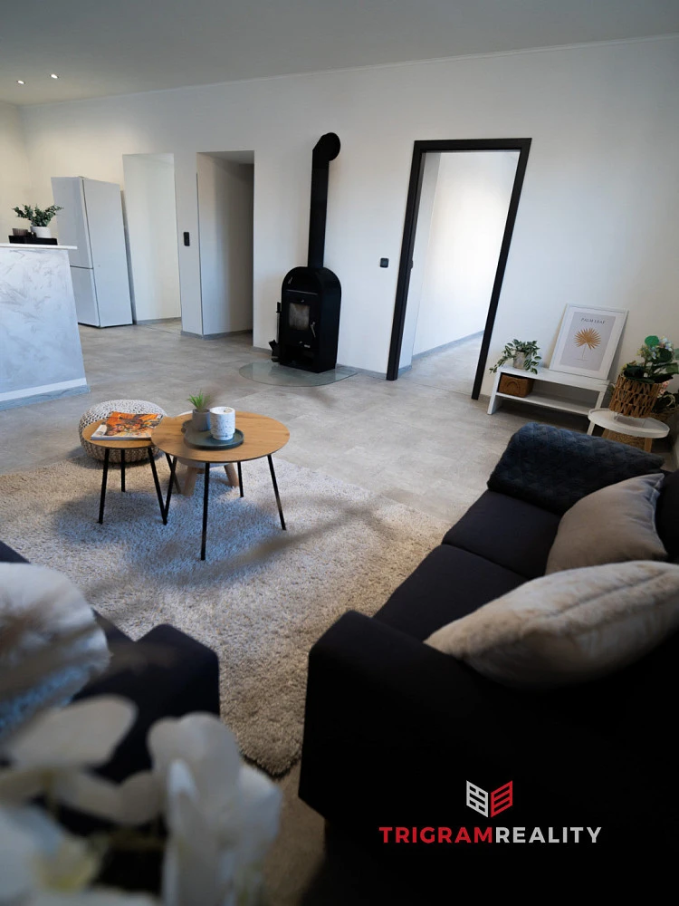 V přízemí najdete bytovou jednotku 3+kk, prostornou obývací místnost s kuchyňským koutem, dva samostatné pokoje a praktickou komoru ideální jako spíž. Dále je zde koupelna s vanou a umyvadlem a samostatné WC. Podkroví nabízí možnost rozšíření o další obytné pokoje.