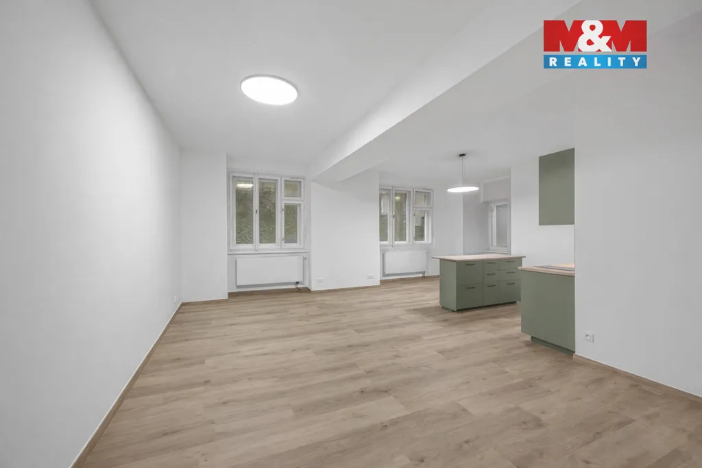 Tento precizně zmodernizovaný byt o velkorysé ploše 46 m² je aktuálně řešen jako světlé 1+kk, které však díky svému chytrému rozvržení nabízí snadnou možnost úpravy na 2+kk. Interiér tvoří elegantní předsíň, nová moderní koupelna se sprchovým koutem a prostorná obytná místnost s novou kuchyňskou linkou. Praktickým benefitem je sklepní kóje (3 m²) náležící k jednotce.