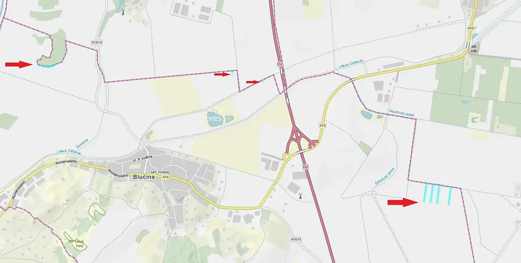 Nabízíme k prodeji pozemky v katastrálním území Blučina, okres Brno-venkov.