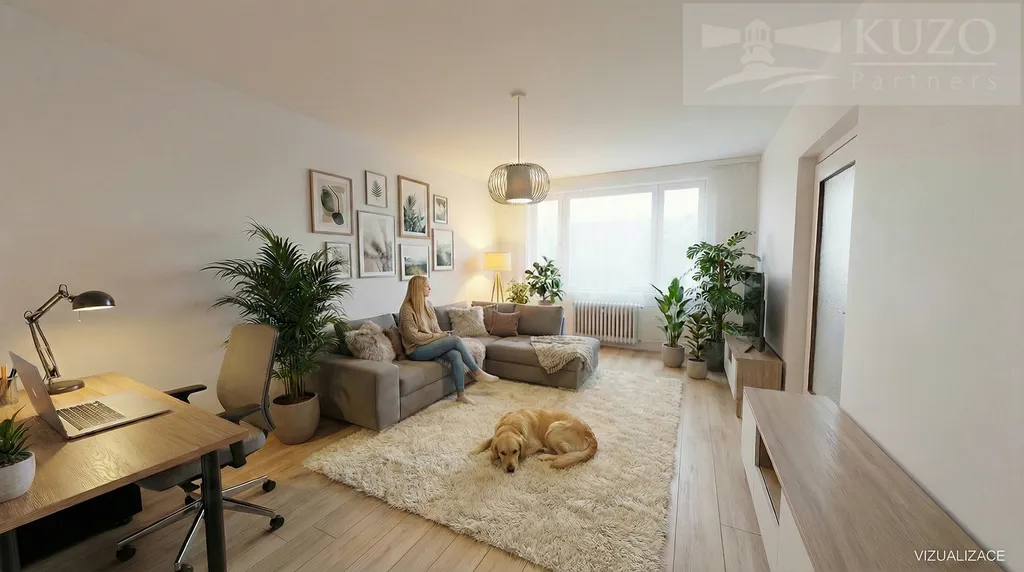 Upozornění: Fotografie označené v pravém dolním rohu nápisem VIZUALIZACE slouží pouze pro představu, jak by byt mohl vypadat, a v žádném případě nezobrazují aktuální stav.